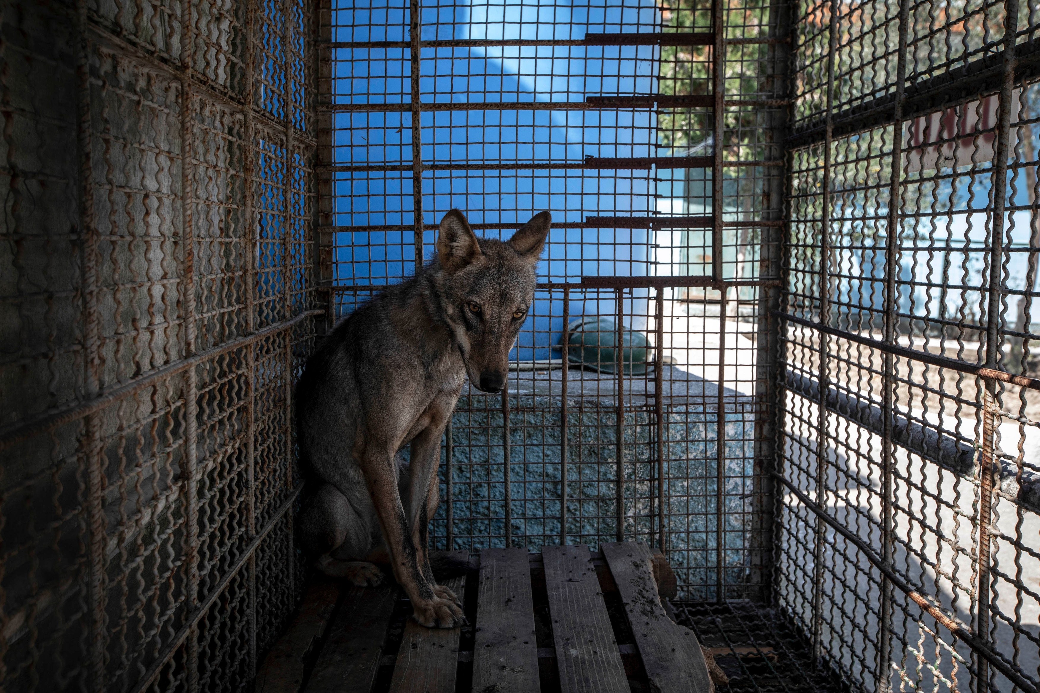 Още на пръв поглед е ясно колко е тежък животът на тези животни. Мършав вълк няма и място да се разходи в клетката.